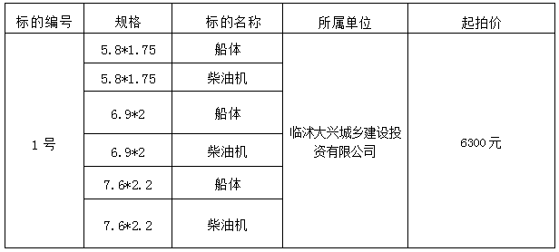 受委托,我公司定于2025年11月18日10时00分在临沂市公共资源交易中心网上竞价系统(http://ggzyjy.linyi.gov.cn/linyi/),依法公开拍卖以下标的:3艘依法查扣铁船及柴油机(整体拍卖)